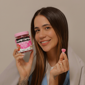 Zayıflamış, incelmiş veya dökülen saçlara karşı geliştirilen Gumitamin, klinik seviyede keratin + biotin desteğiyle saç köklerini içeriden güçlendirir.